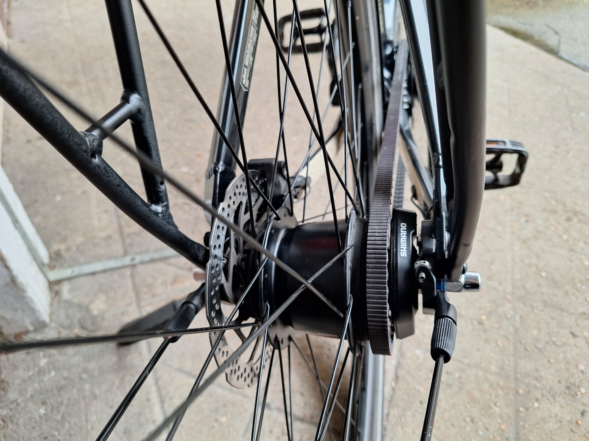 Moyeu à vitesses Nexus 5 avec système de changement de vitesse électronique Shimano Di2, courroie Gates CDX en fibre de carbone